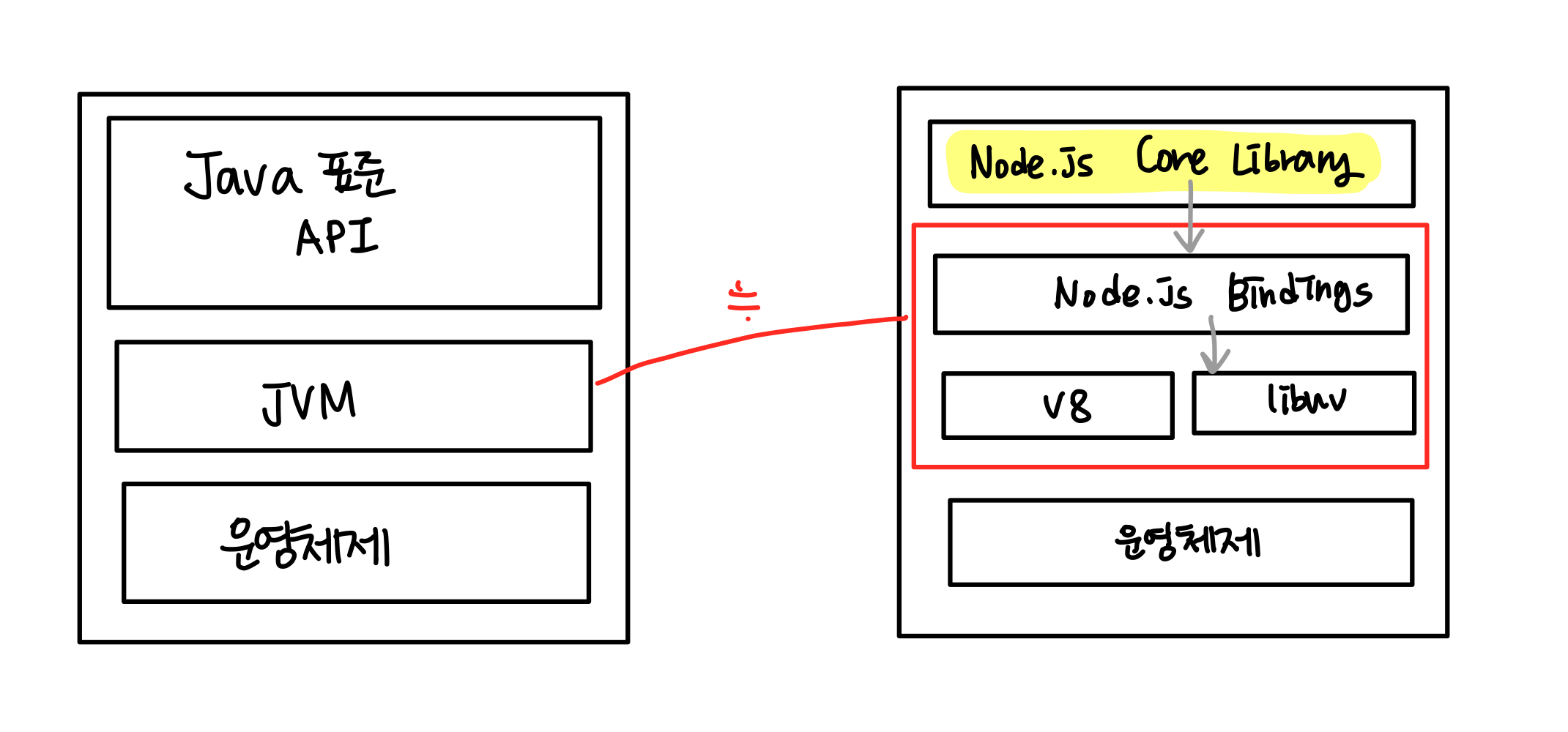 - 우리는 Node.js Core Library만 알면 되고, 나머지는 내부적으로 작동된다.